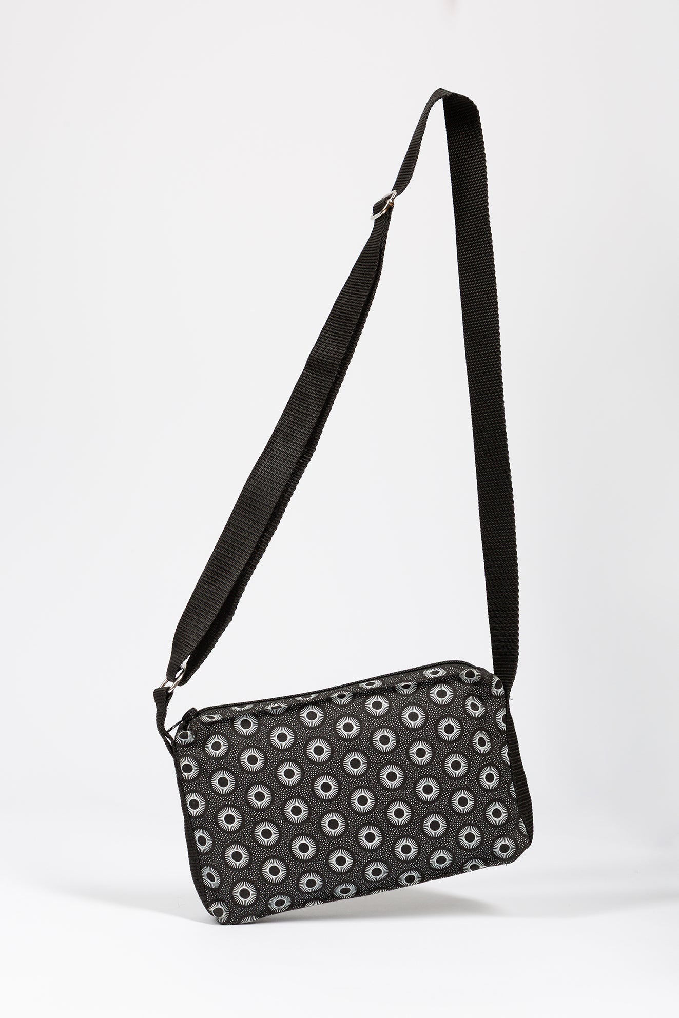 Die kompakte unisex Umhängetasche aus strapazierfähigem Baumwollstoff mit Waxprint. Mit verstellbarem Gurt und praktischem Reißverschlussfach bietet sie Platz für Handy, Schlüssel, Geldbörse und mehr.