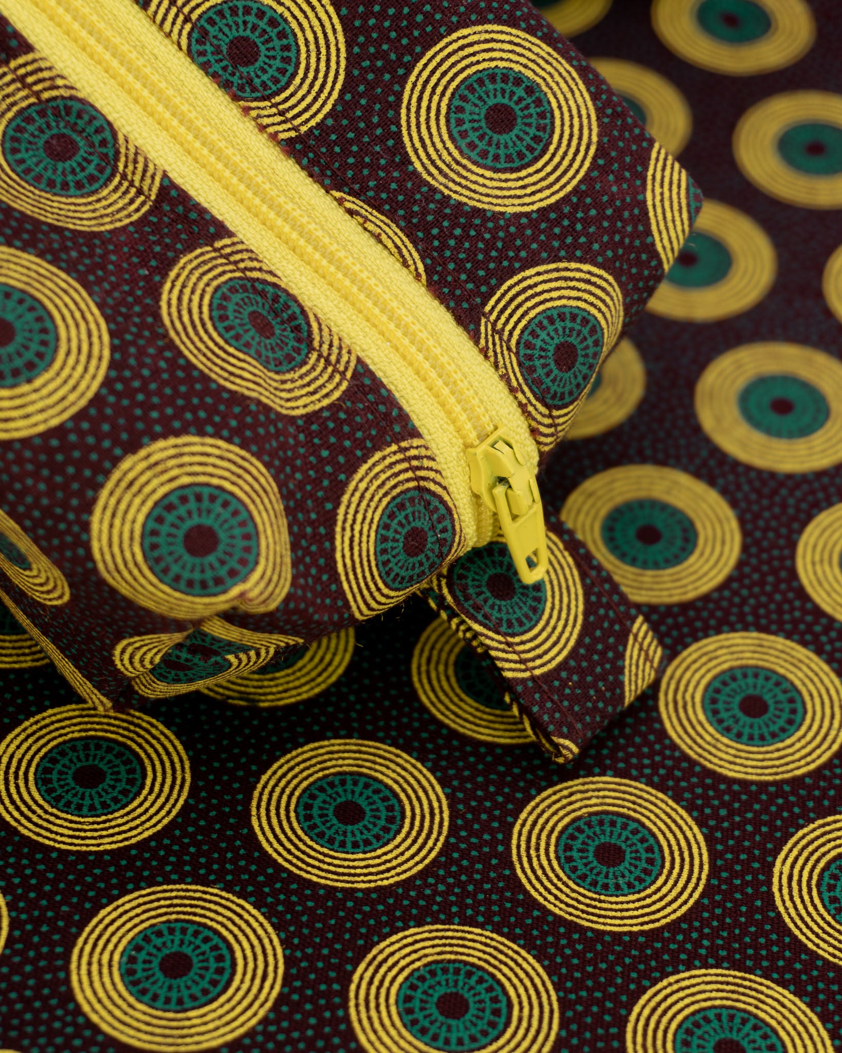 Die kleinste handgefertigte Tasche aus robustem afrikanischen Baumwollstoff mit imprägnierter Innenseite, hilft dir bei der Aufbewahrung deiner Alltagskleinigkeiten.