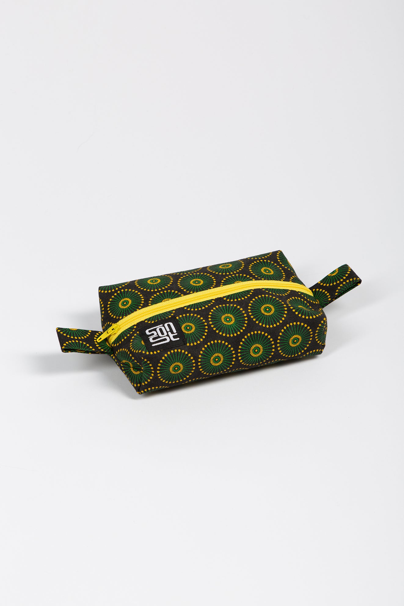 Die kleinste handgefertigte Tasche aus robustem afrikanischen Baumwollstoff mit imprägnierter Innenseite, hilft dir bei der Aufbewahrung deiner Alltagskleinigkeiten.