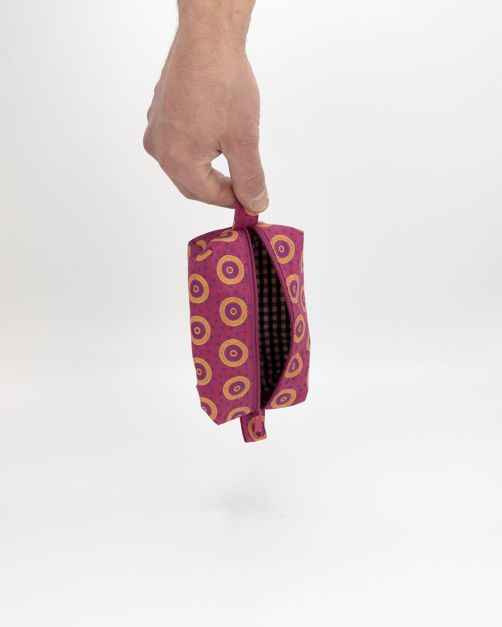 Die kleinste handgefertigte Tasche aus robustem afrikanischen Baumwollstoff mit imprägnierter Innenseite, hilft dir bei der Aufbewahrung deiner Alltagskleinigkeiten.