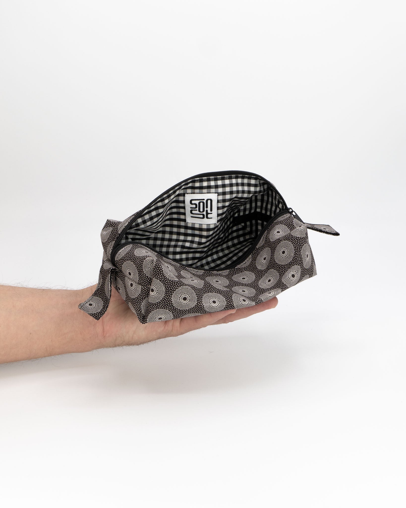 Die kleine handgefertigte Tasche aus robustem afrikanischen Baumwollstoff mit imprägnierter Innenseite, hilft dir bei der Aufbewahrung deiner Alltagskleinigkeiten.