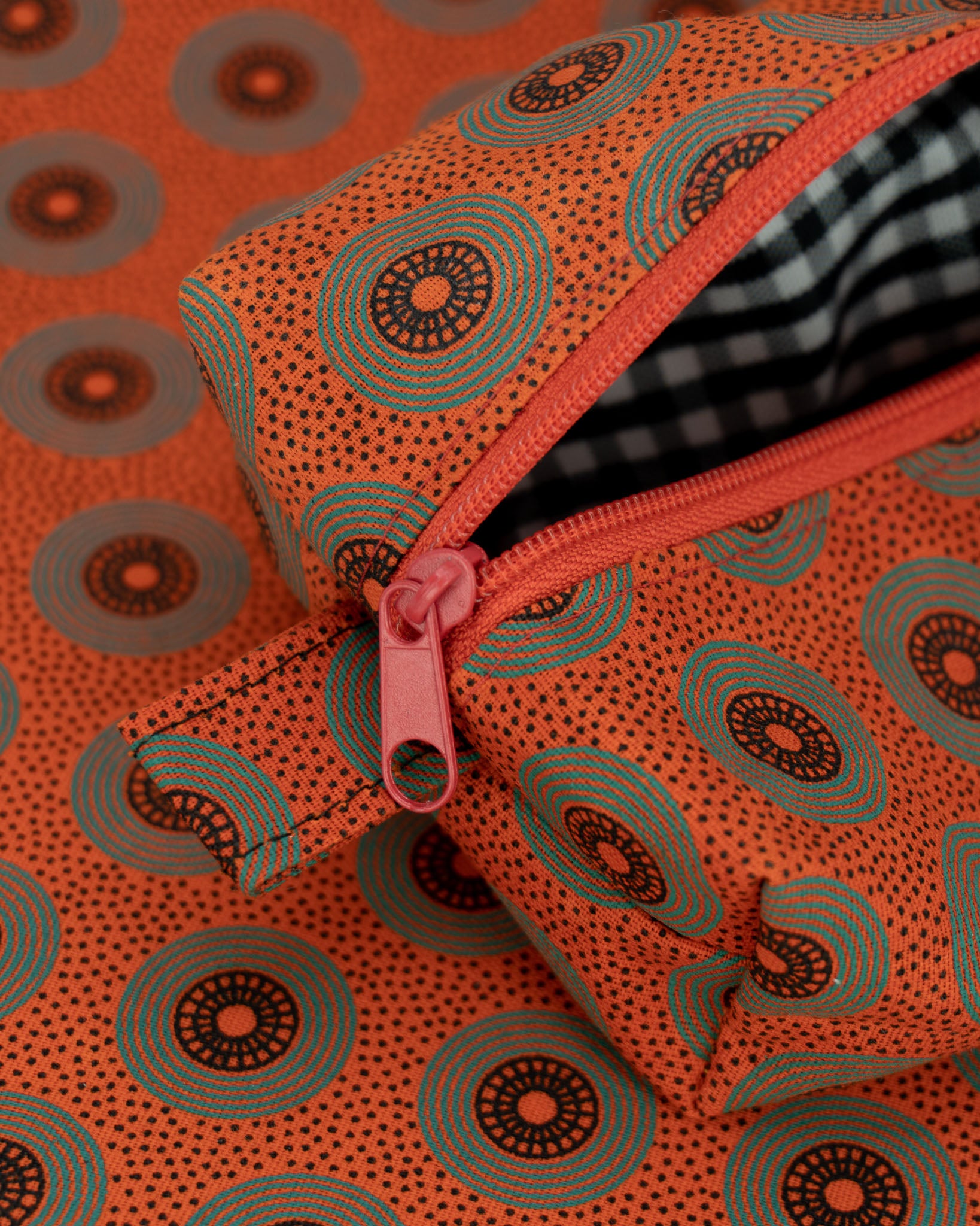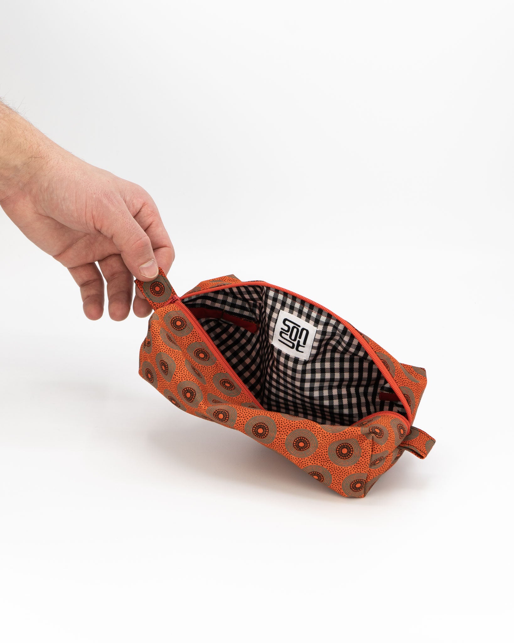 Die kleine handgefertigte Tasche aus robustem afrikanischen Baumwollstoff mit imprägnierter Innenseite, hilft dir bei der Aufbewahrung deiner Alltagskleinigkeiten.