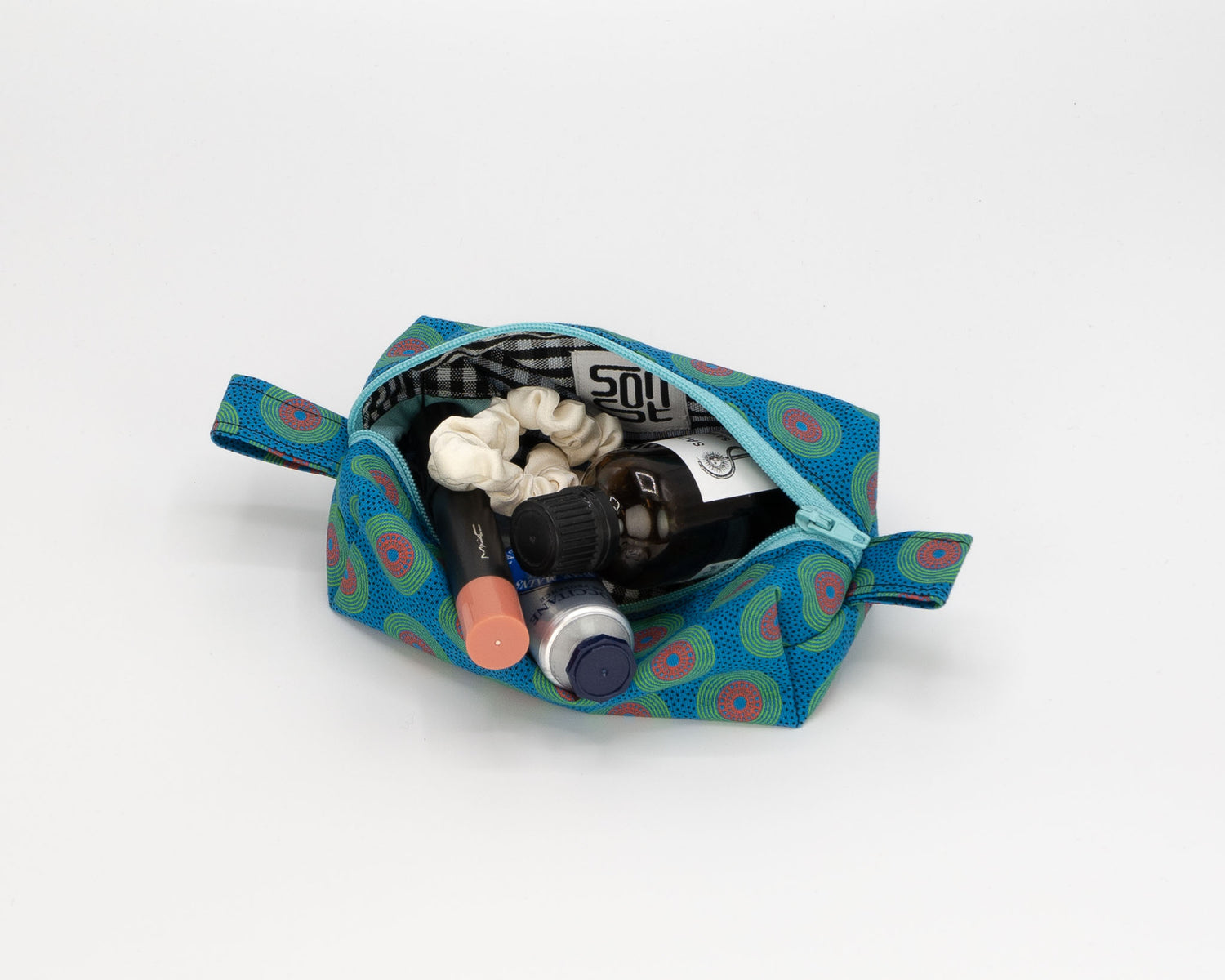 Die kleine handgefertigte Tasche aus robustem afrikanischen Baumwollstoff mit imprägnierter Innenseite, hilft dir bei der Aufbewahrung deiner Alltagskleinigkeiten.