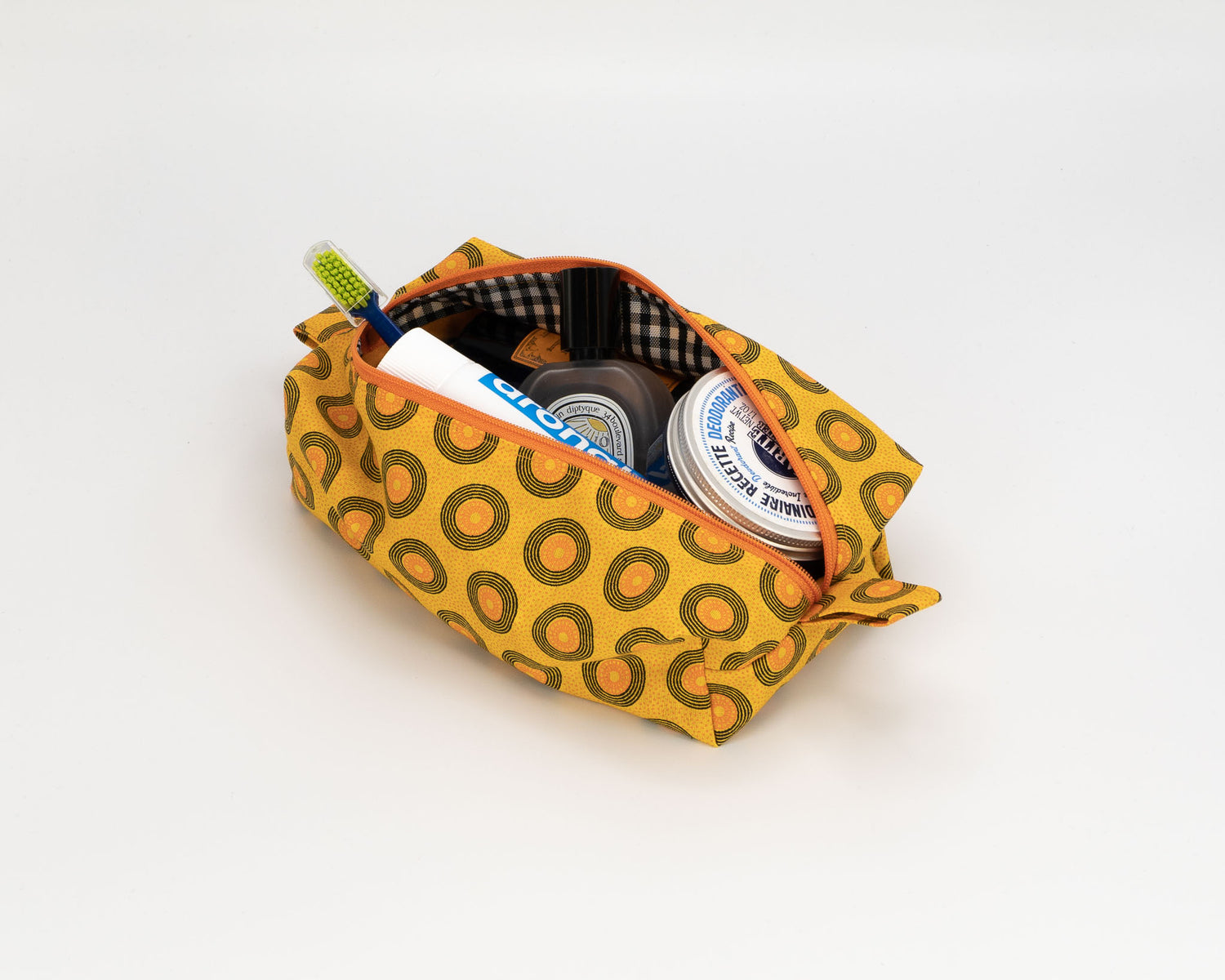 Die kleine handgefertigte Tasche aus robustem afrikanischen Baumwollstoff mit imprägnierter Innenseite, hilft dir bei der Aufbewahrung deiner Alltagskleinigkeiten.